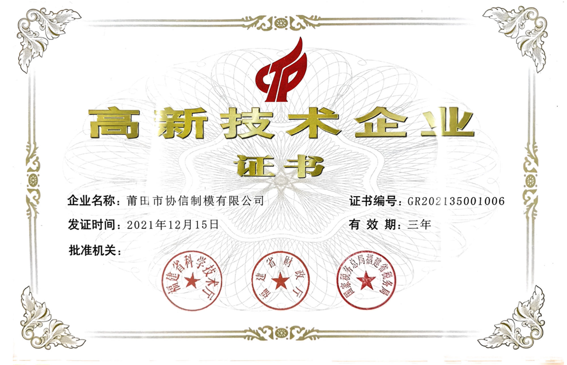 公司信譽度良好,2014年開始至今,連續(xù)多年獲得“納稅大戶”稱號。公司的管理和技術(shù)力量雄厚,榮獲了“福建省科技小巨人企業(yè)”、“科技型中小企業(yè)”、“市級企業(yè)技術(shù)中心”等稱號。2021年獲得“國家高新技術(shù)企業(yè)”認定,通過GB/T29490-2013《知識產(chǎn)權(quán)管理體系認證》。